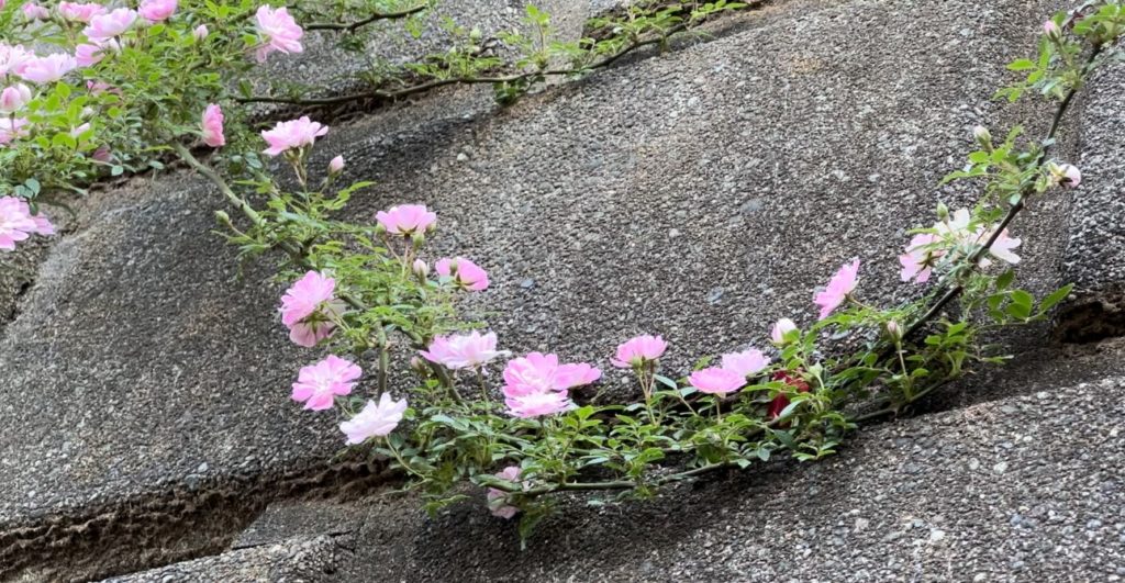 崖につるバラを定植する様子を、今回はご紹介していきます。