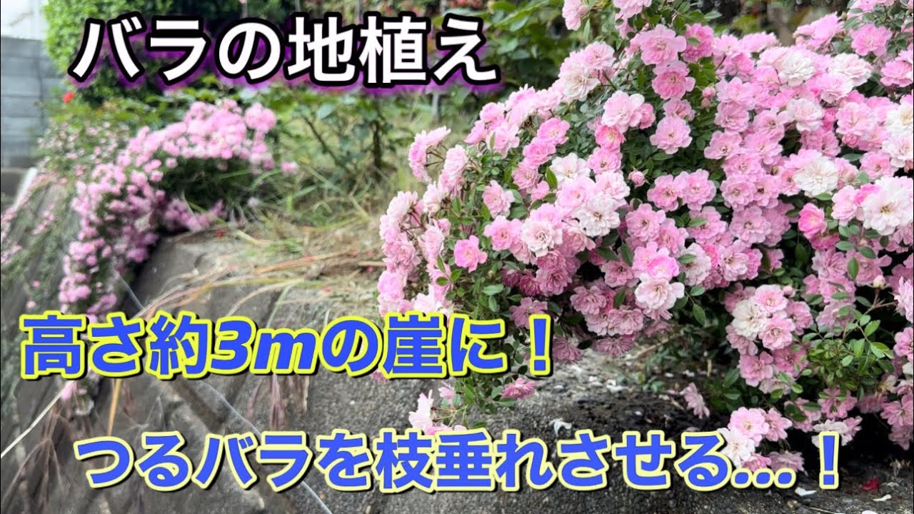 今回は、高さ約3mの崖の上に、つるバラを植えて、枝垂れさせていきます✨